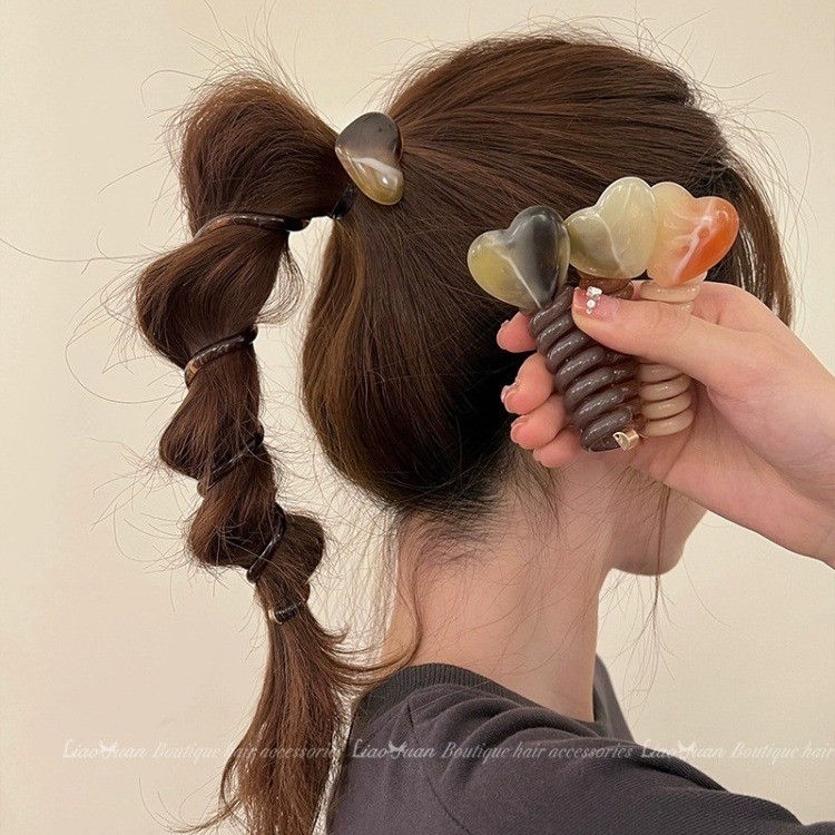 Эта резинка имеет уникальную спиральную форму, благодаря которой она нежно и надежно фиксирует пряди волос, не повреждая их.