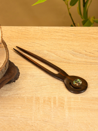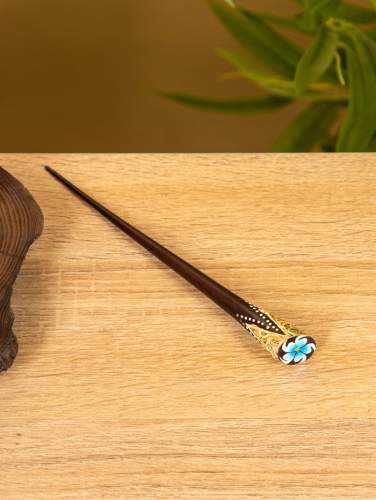 Шпилька для волос «Спираль», 17 см, дерево албезия, коричневая, голубая
