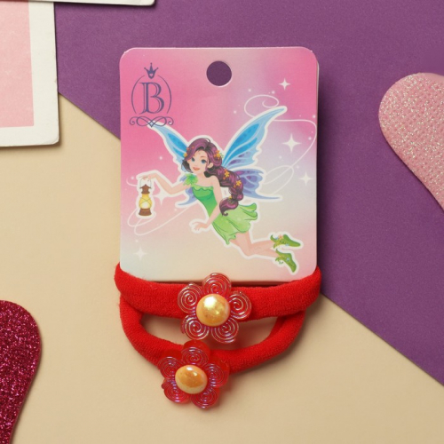 Резинки для волос Выбражулька «Фея», набор 2 шт., цветочек, 4 см, красные