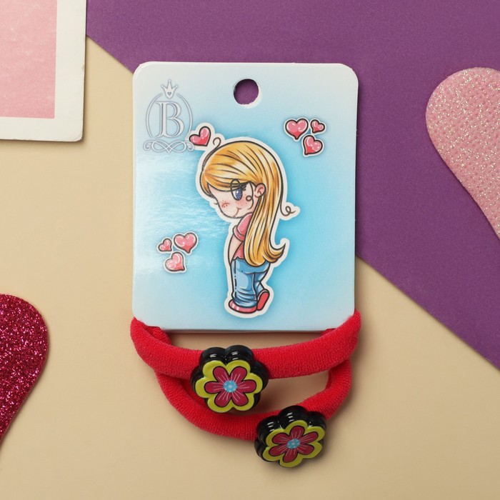 Резинки для волос Выбражулька «Нежность», набор 2 шт., цветочек, 4 см, красные