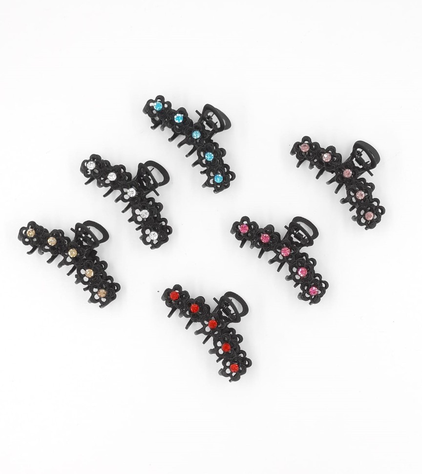 Заколка - Краб для волос, металлический, с камнем в ассортименте (ТВ-135)