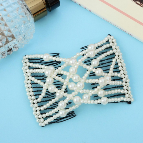 Зажим для волос «Жемчужная сетка», крупная бусина, белый
