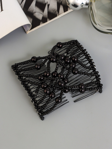 Зажим для волос «Жемчужная сетка», шарики, 9 см, чёрный