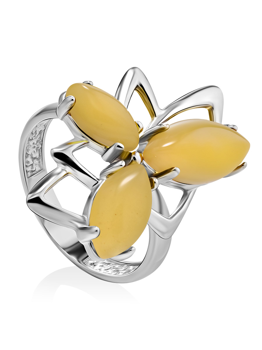 Асимметричное кольцо с медовым янтарём «Калипсо»