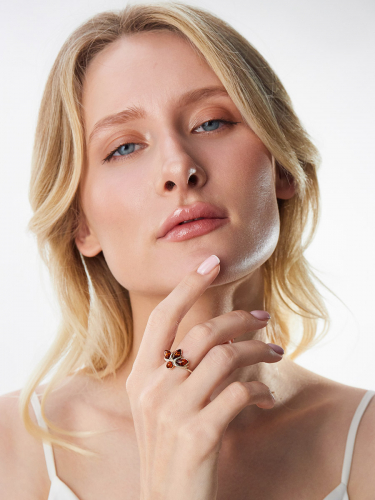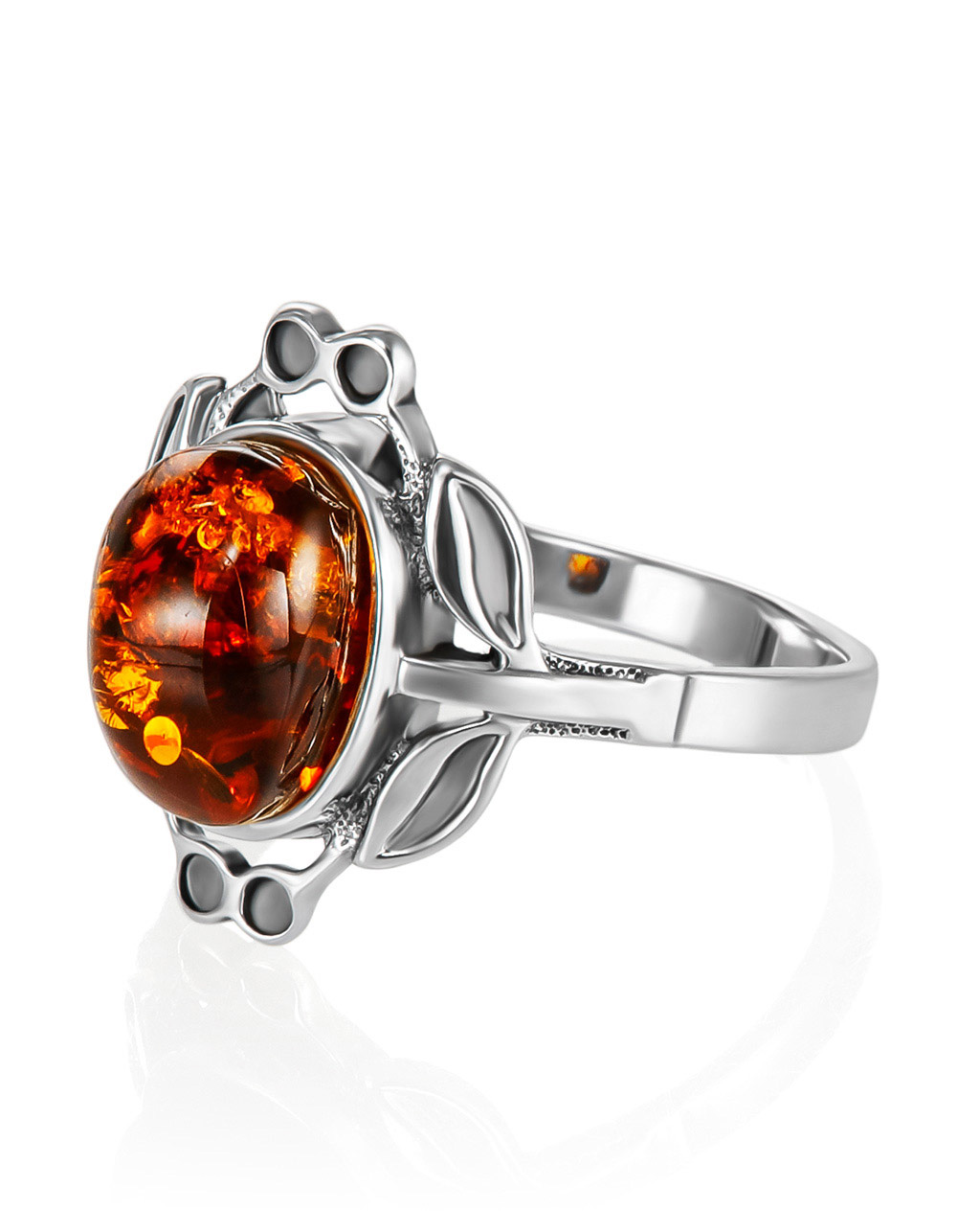 Ажурное кольцо из цельного искрящегося янтаря коньячного цвета «Кармен»