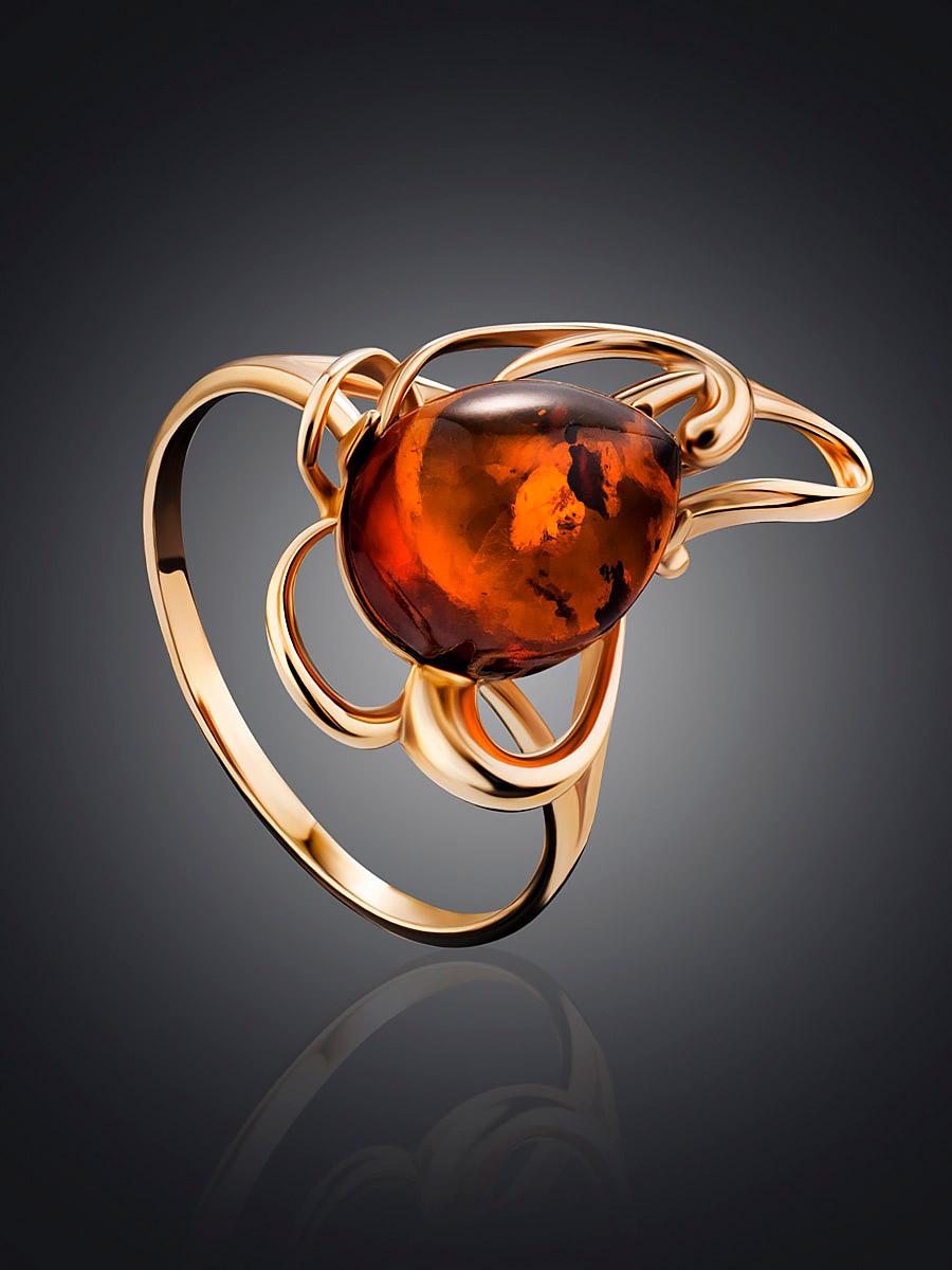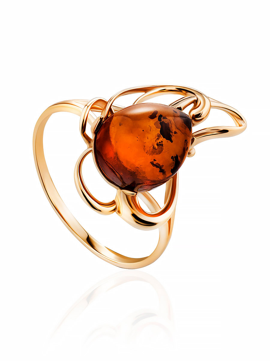 Ажурное кольцо «Ромашка» из натурального коньячного янтаря