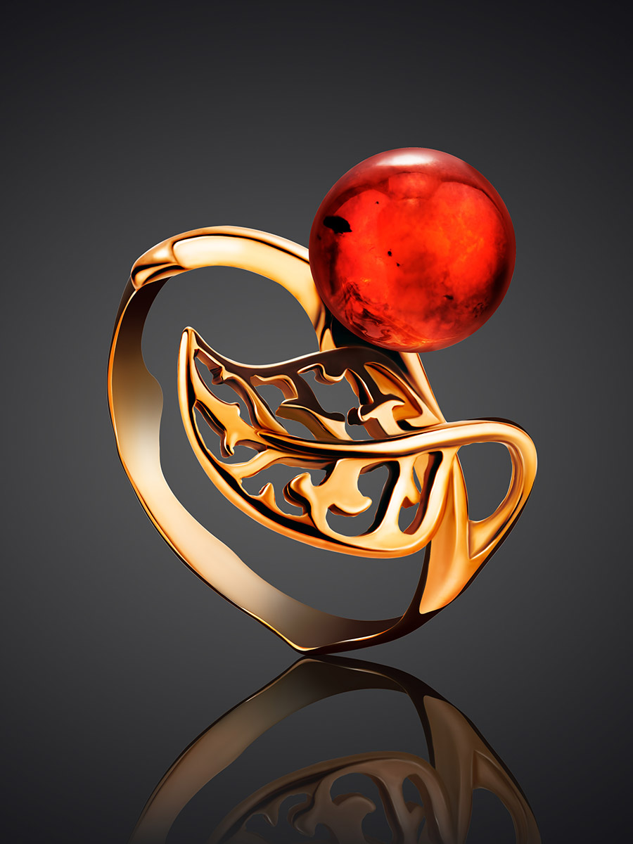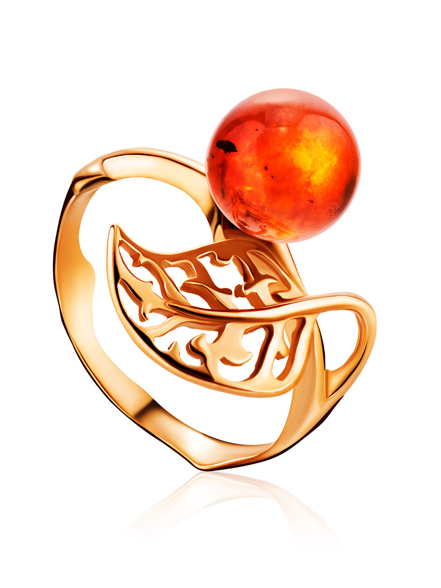 Ажурное кольцо с натуральным коньячным янтарём «Флорина»