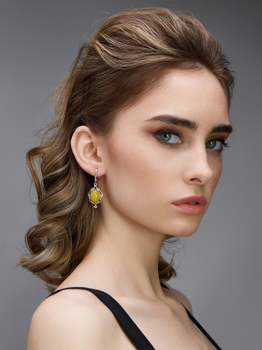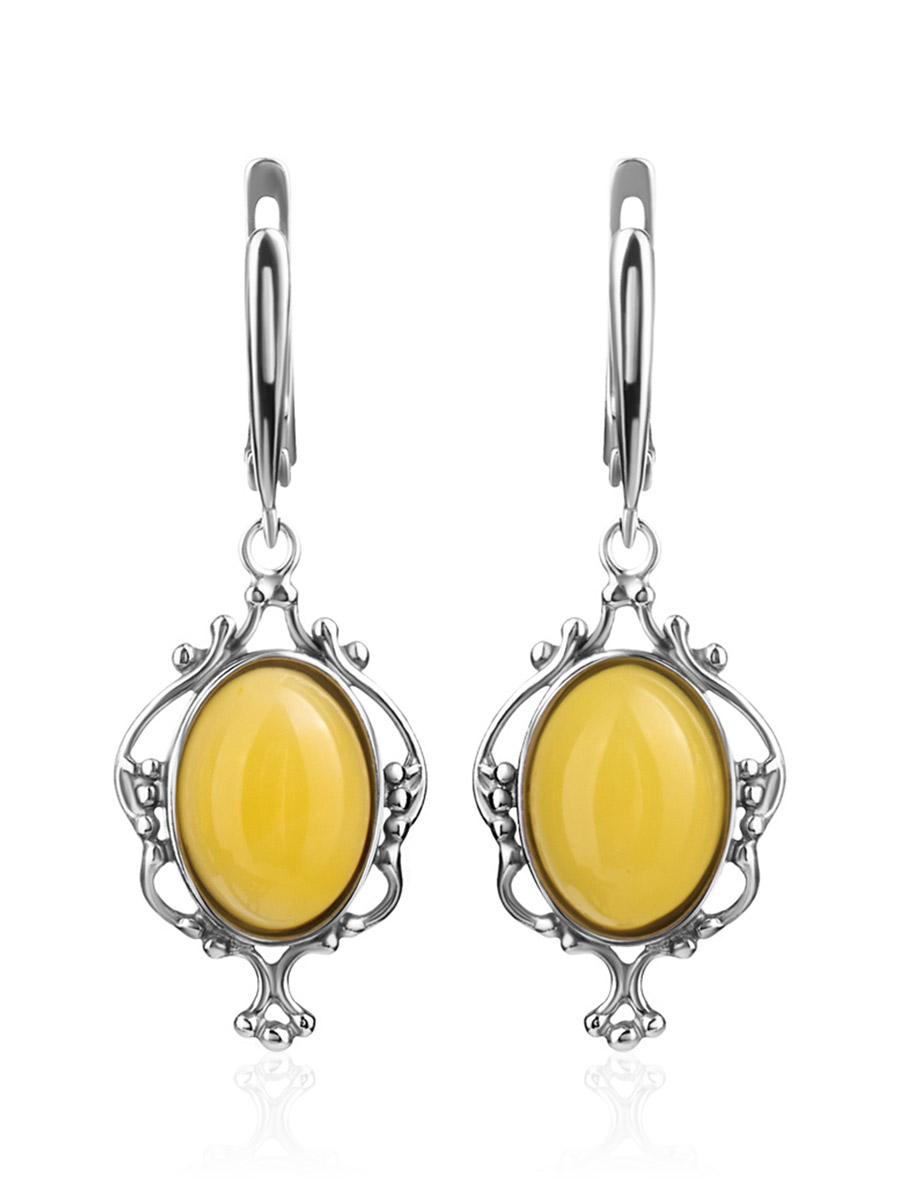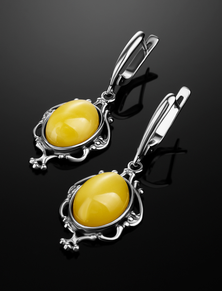 Ажурные серьги «Кармен» с цельным медовым янтарём