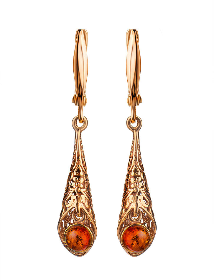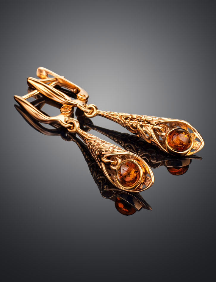 Ажурные серьги «Роксана» из натурального янтаря