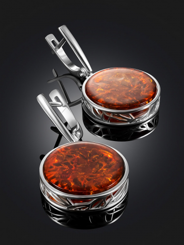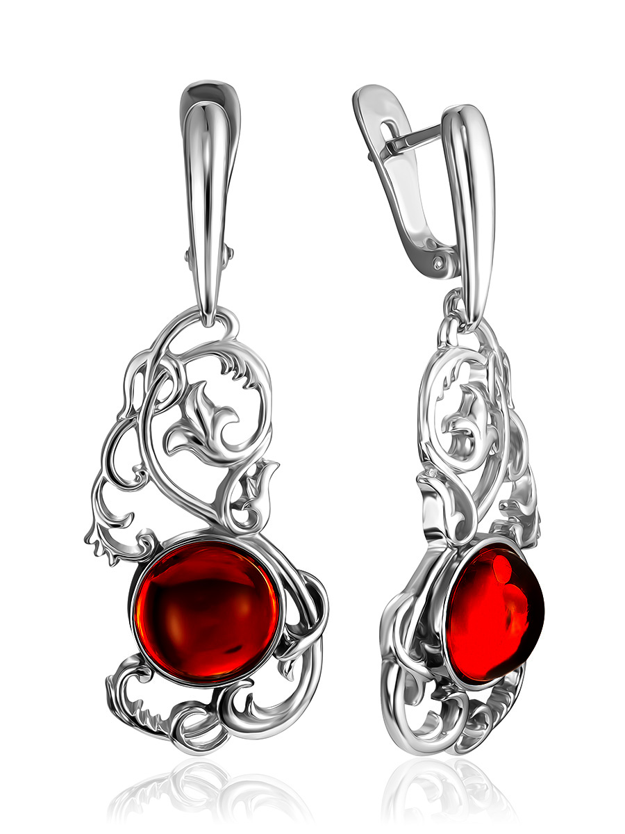 Для образов, подчёркивающих вашу трепетность, очарование и внутренний огонь надевайте серьги «Кордова» с вишнёвым янтарём. _x000D_