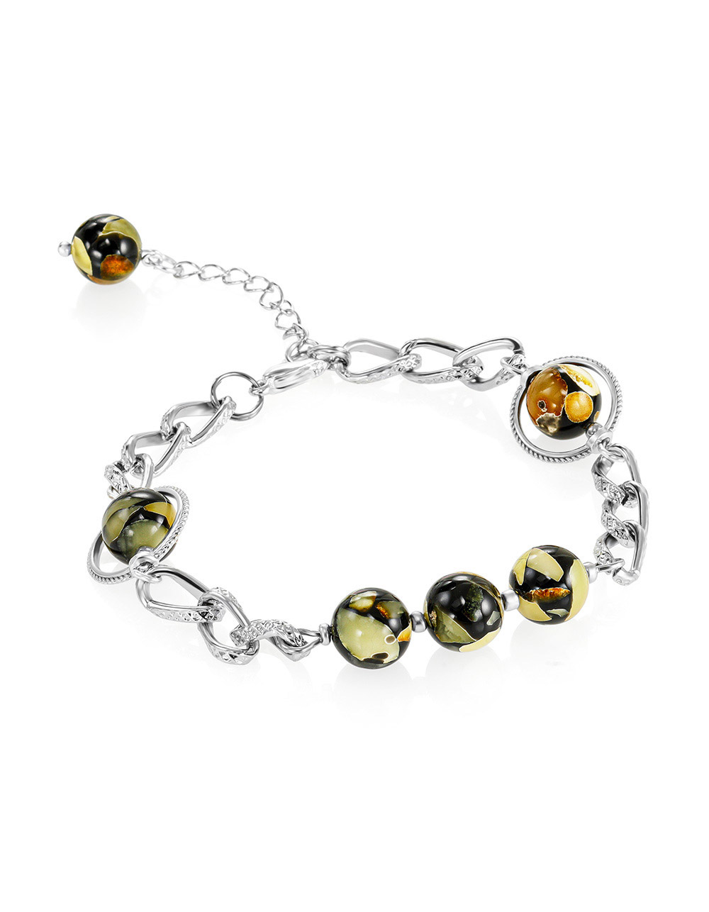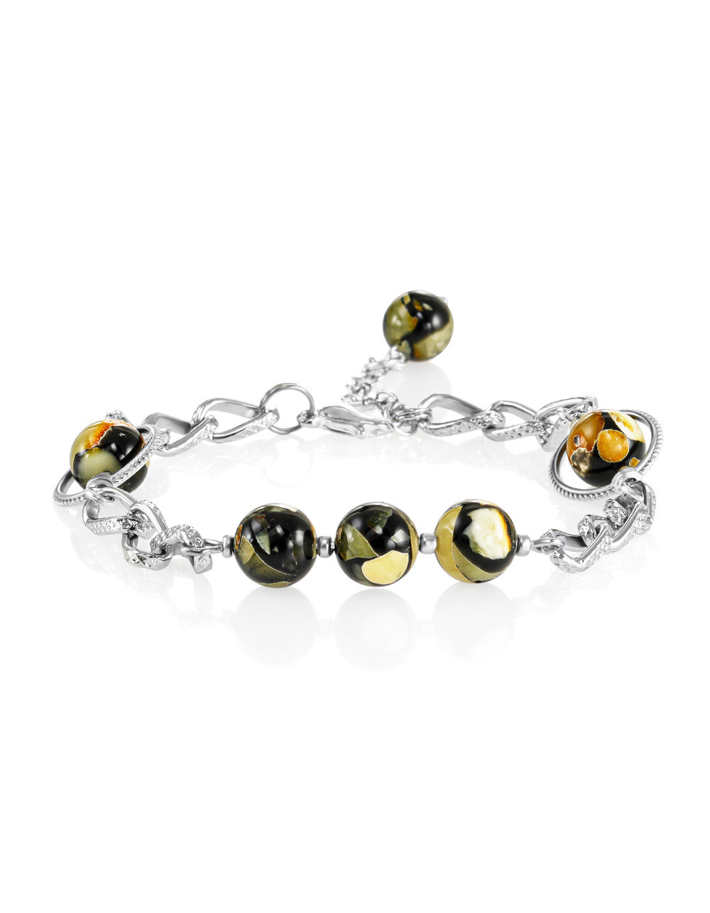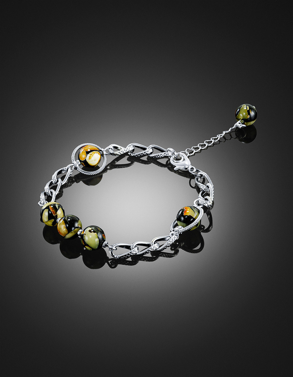 Ажурный браслет с пёстрыми мозаичными бусинами из янтаря «Далматин»