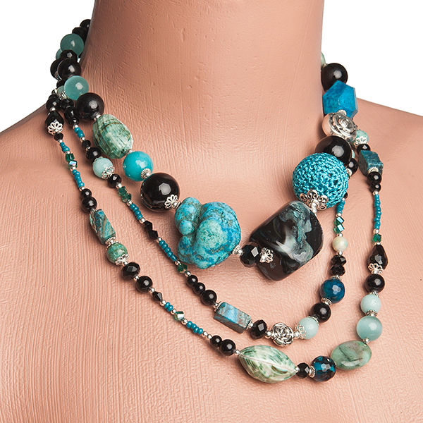 Агат, бирюза, кварцит, яшма. Гальваническое покрытие: родий.