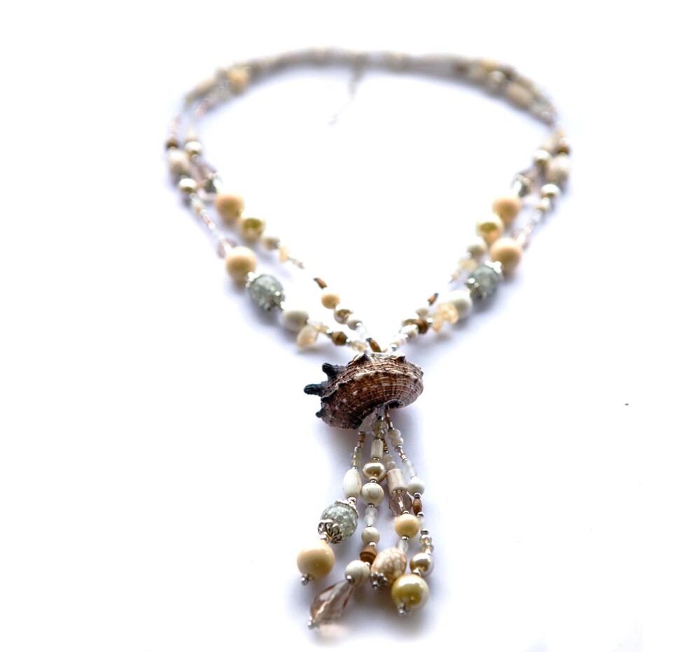 Раковина, цитрин, кахолонг, жемчуг Majorca, кристаллы Preciosa, латунь. Гальваническое покрытие: родий.
