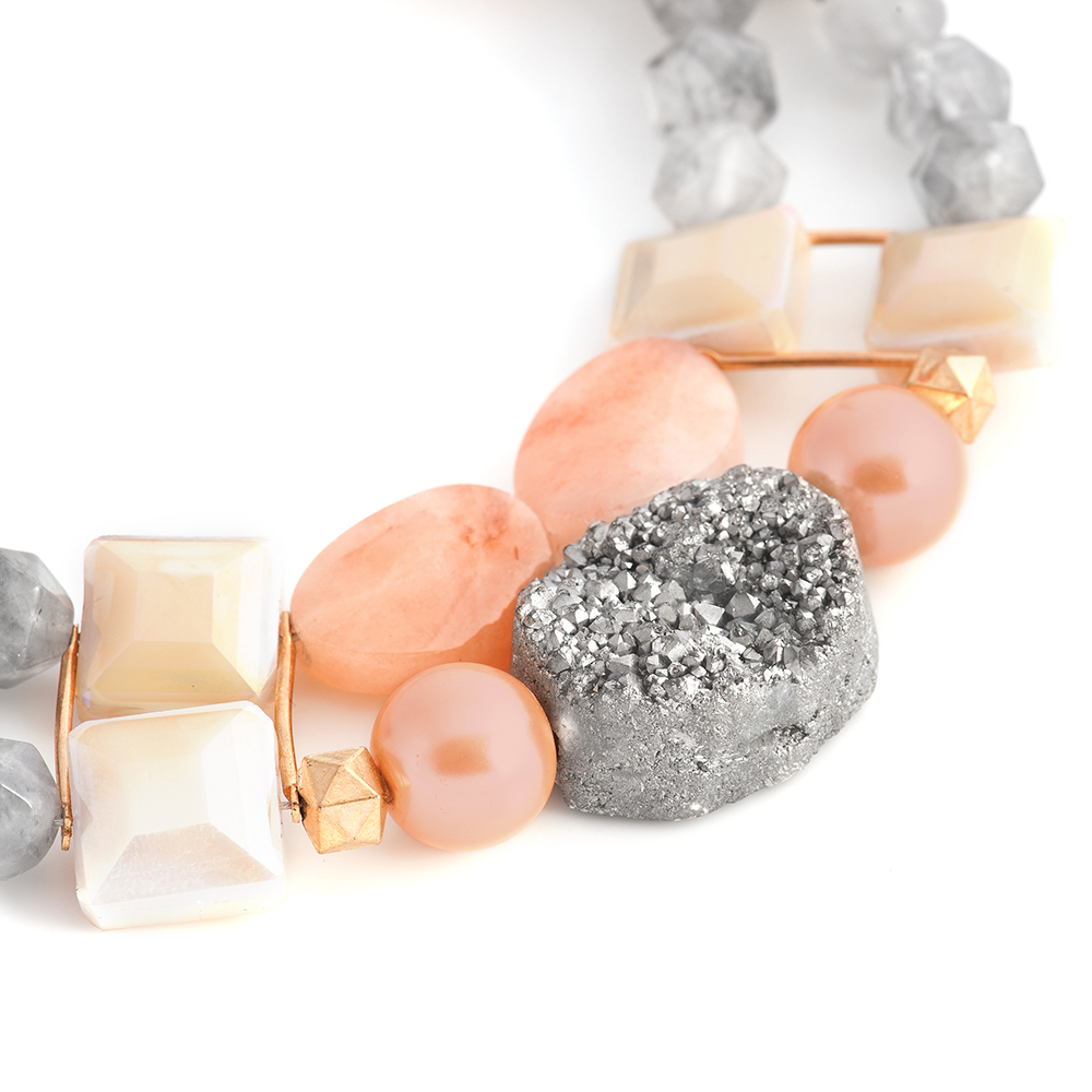 Яшма, пирит, жемчуг Majorca, хрустальное стекло, кристаллы Preciosa, латунь. Гальваническое покрытие: золото.натуральные камни