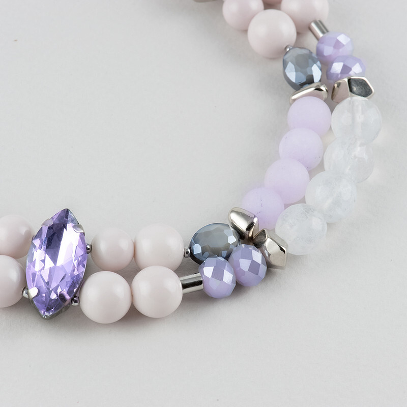 Кварц, кошачий глаз, жемчуг Majorca, кристаллы Preciosa, латунь. Гальваническое покрытие: родий.