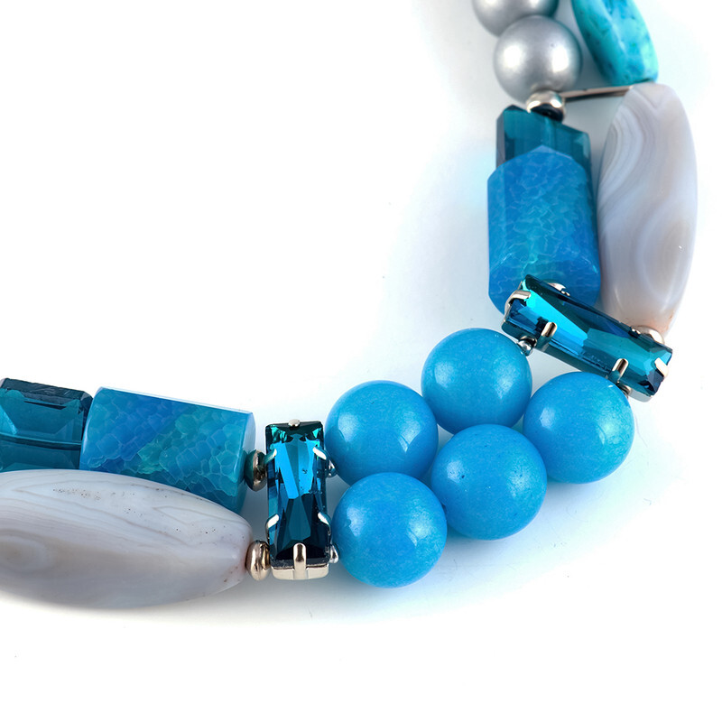 Агат, варисцит, кварц, жемчуг Majorca, латунь. Гальваническое покрытие: родий.