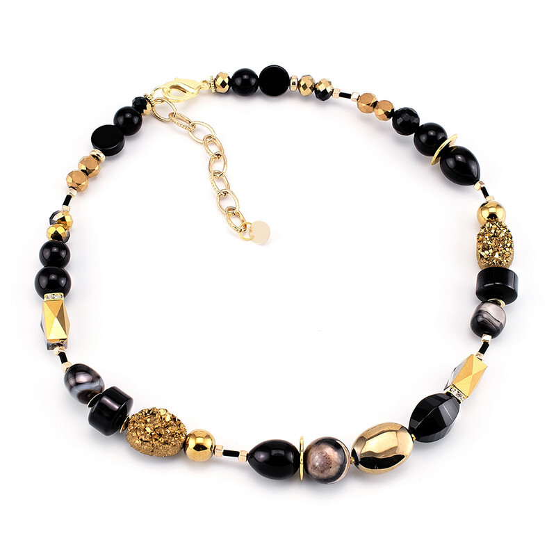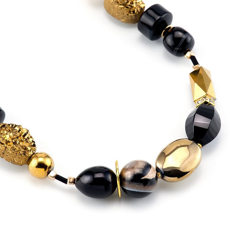 Агат, пирит, хрустальное стекло, латунь. Гальваническое покрытие: золото.