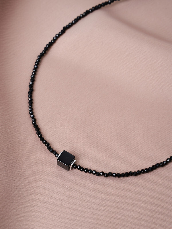 Размер: Удлинительная цепочка поможет скорректировать размер посадки37.5-42.5см,ширина2мм.Искусственная шпинель2мм,кубик оникс 6мм.