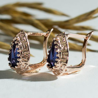Серьги со стразами "Эдель" капля, цвет тёмно-синий в золоте