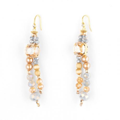 Кристаллы Preciosa, кошачий глаз, искусственный жемчуг, латунь. Гальваническое покрытие: золото.