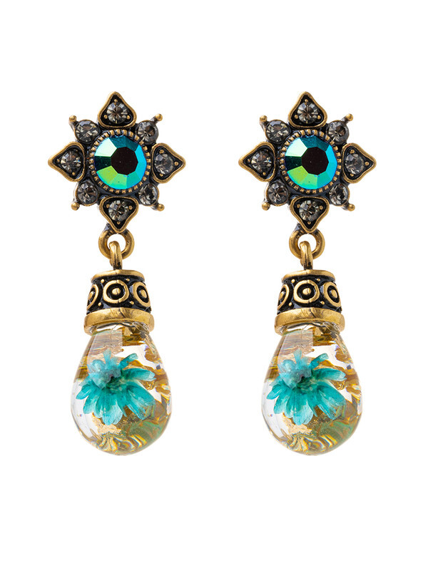 Ювелирная смола, кристаллы Preciosa, латунь. Гальваническое покрытие: золото antique.