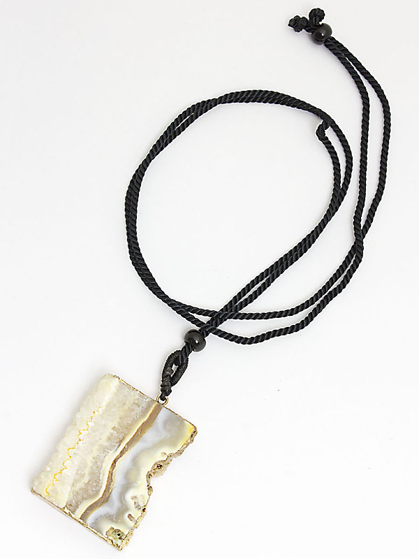 2804. Кулон из жиоды агата с позолотой на веревке Волна. 873005-9/22АГ