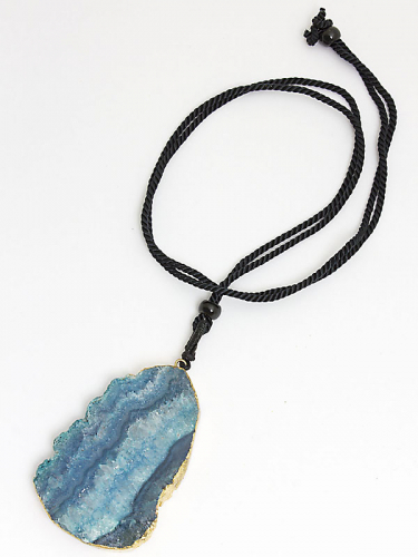 Кулон из друзы агата с позолоченным краем на веревке. Размер кулона 35*45мм. Длина веревки до 65 см. Цена указана за 1 шт. Каждый кулон имеет индивидуальную форму и цветовой оттенок. Возможно отличие от фото.