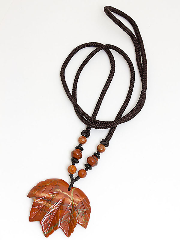 2822. Кулон из натуральной яшмы на веревке Лист. 8739088Я
