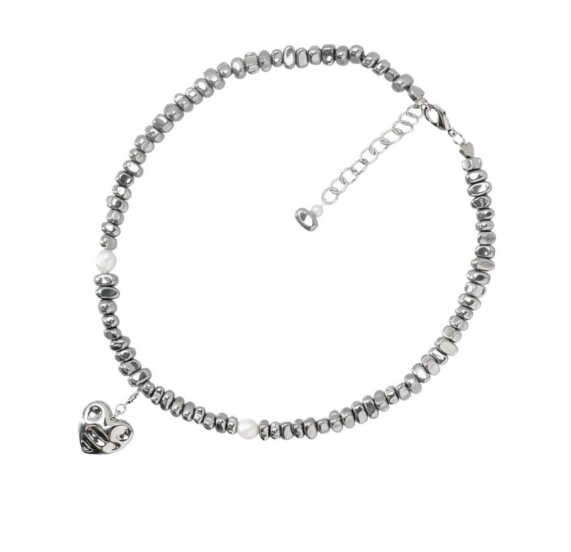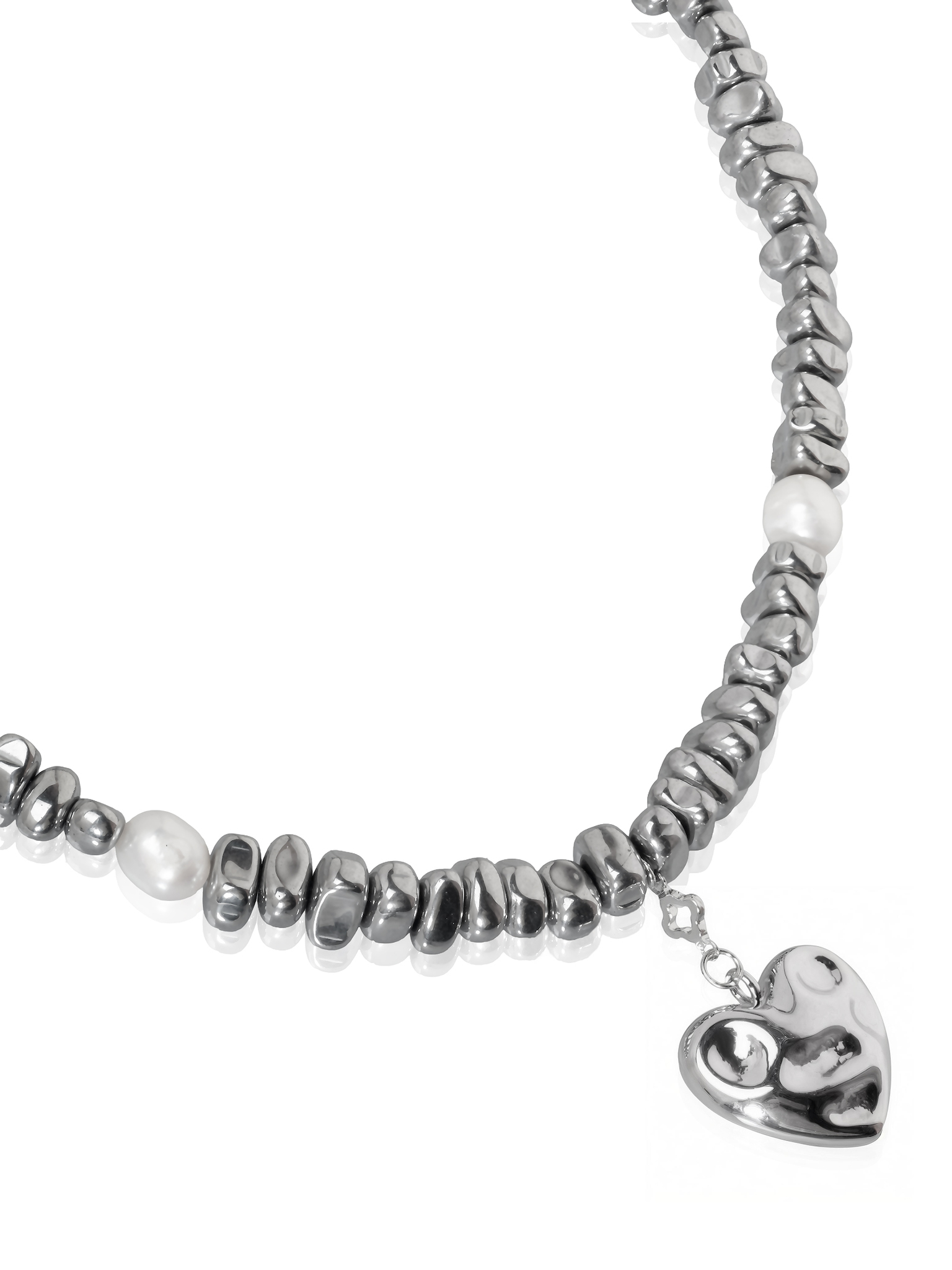 Гематит, натуральный жемчуг, ювелирный сплав. Гальваническое покрытие: родий.