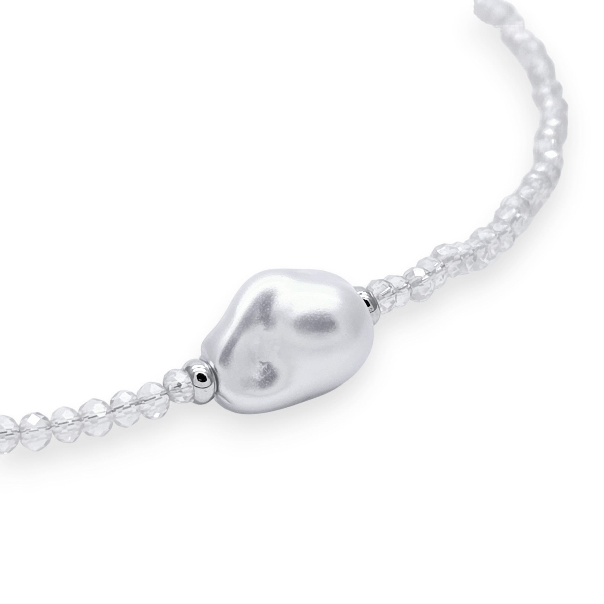 Хрустальное стекло, жемчуг Майорка, ювелирный сплав. Гальваническое покрытие: родий.