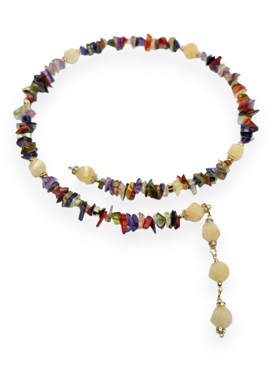Размер: Длина колье 47 см. Длина кулона 8 см. Кварц лимонный 10 мм.