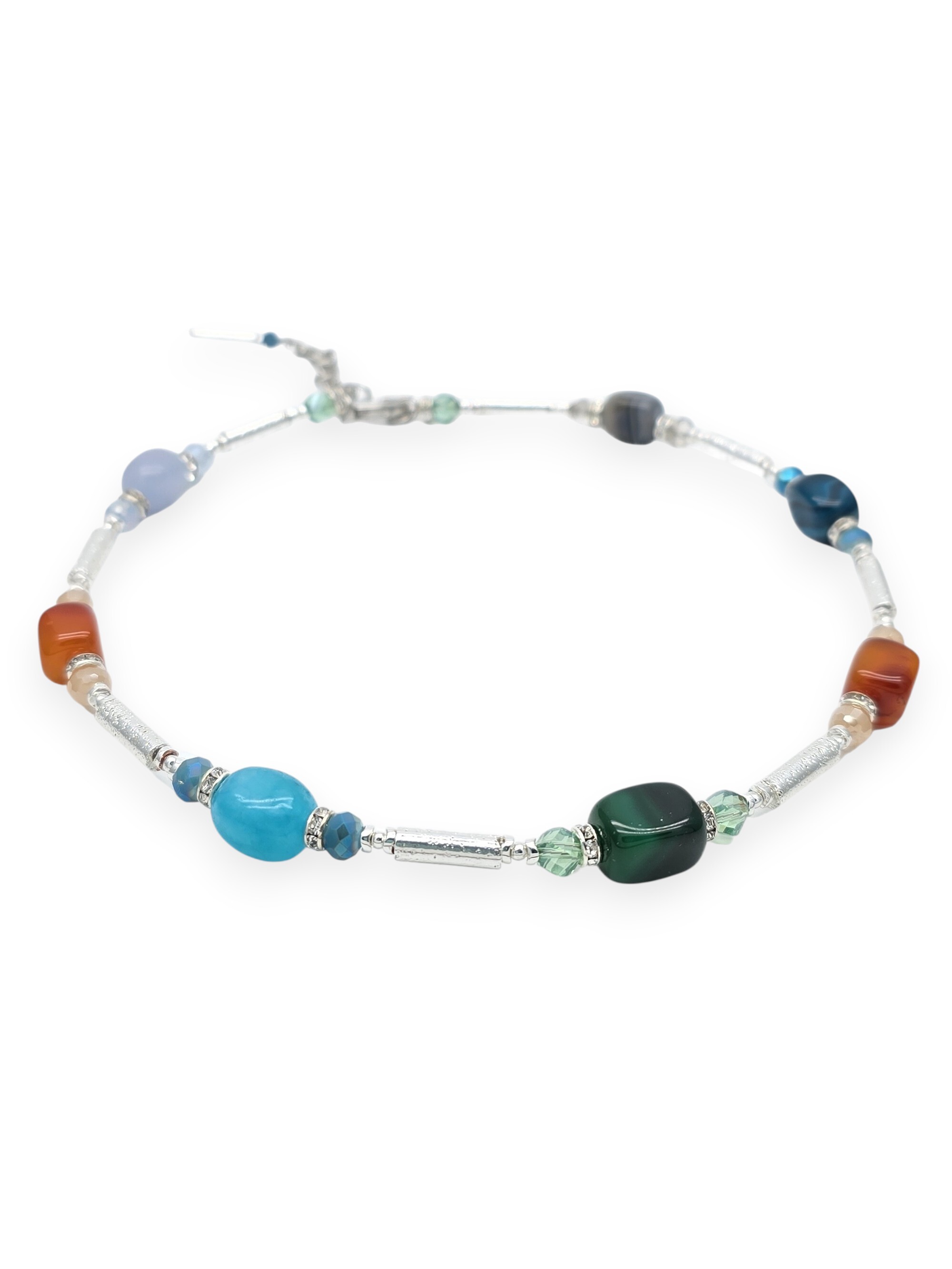 Сердолик, ботсванский агат, агат, хрустальное стекло, вулканическая лава, стразы, ювелирный сплав. Гальваническое покрытие: родий.