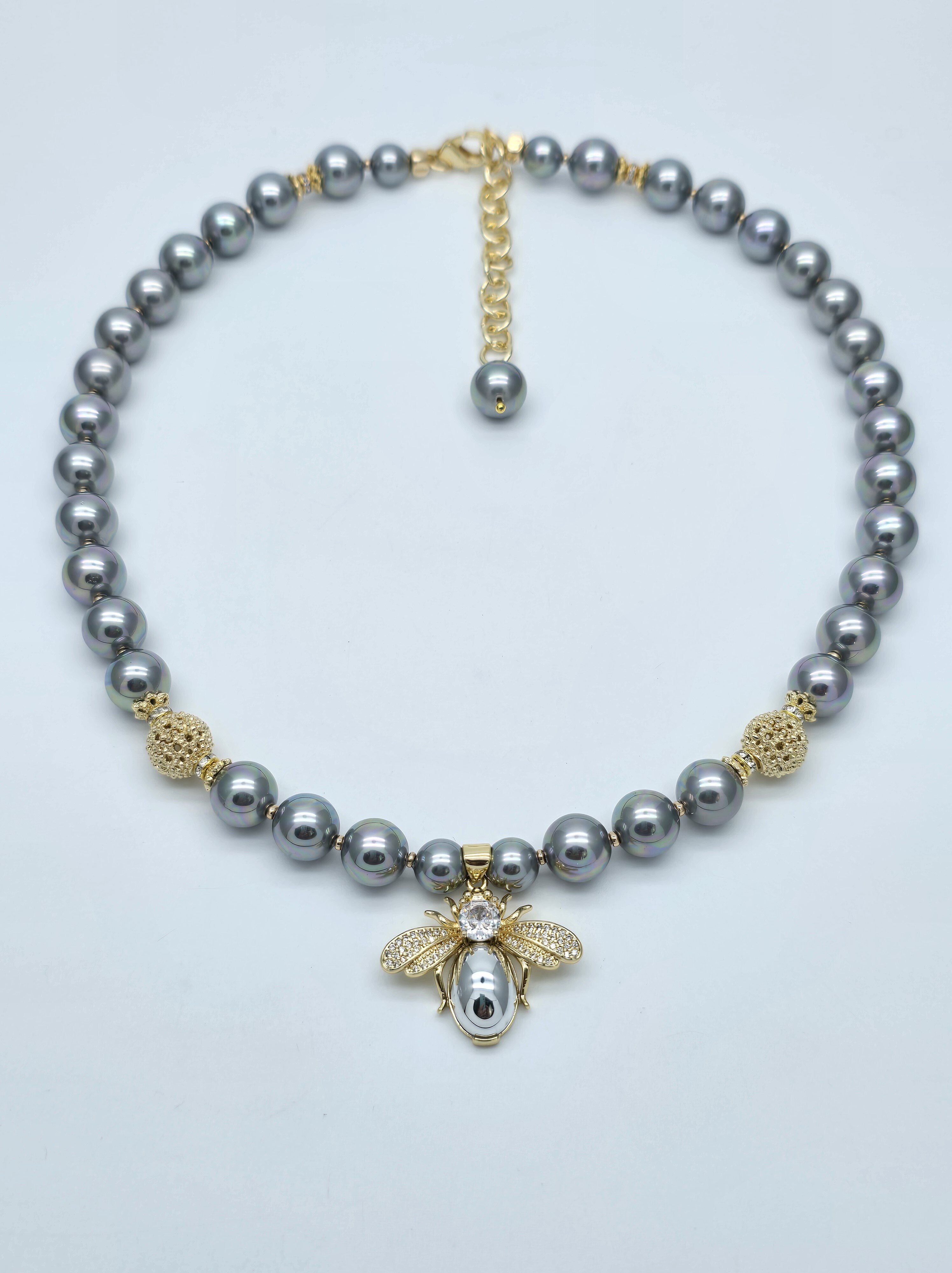 Размер: Длина колье 47 - 54 см. Кулон 2,3*3 см. Жемчуг Майорка 8;10 мм.