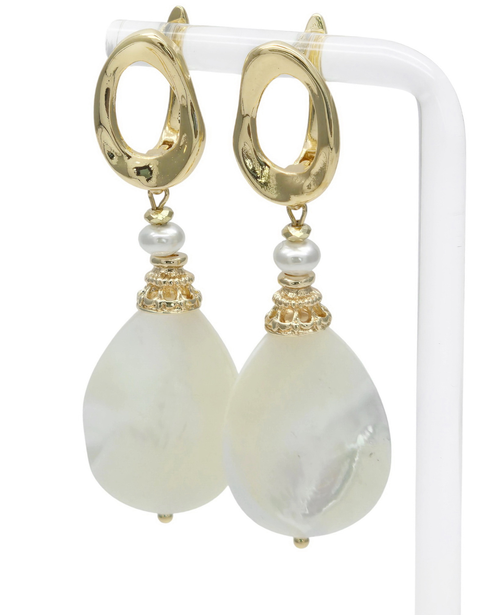 Жемчуг Майорка, перламутр натуральный, ювелирный сплав. Гальваническое покрытие: золото.