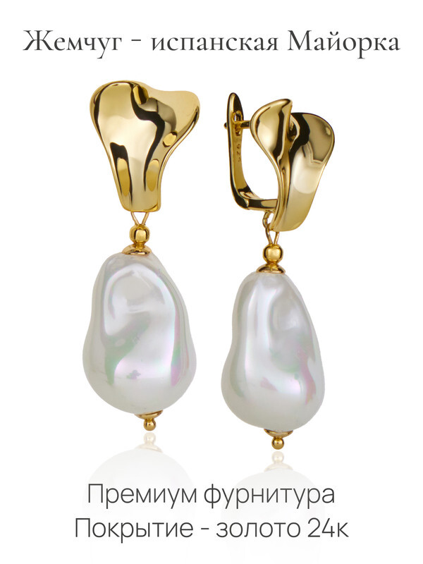 Размер: Длина серег с учетом швенз 4,5 см. Жемчуг Майорка 15*22 мм.