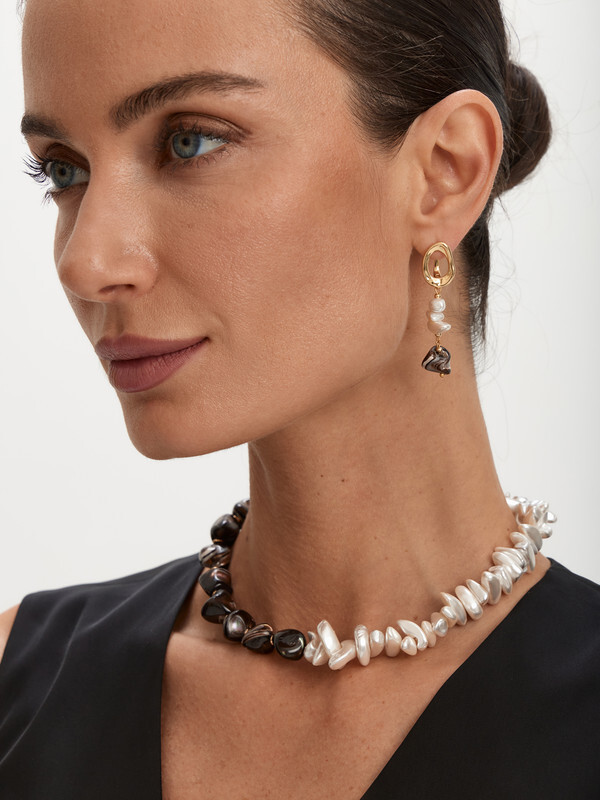 Перламутр натуралный, жемчуг Майорка, ювелирный сплав. Гальваническое покрытие: золото.