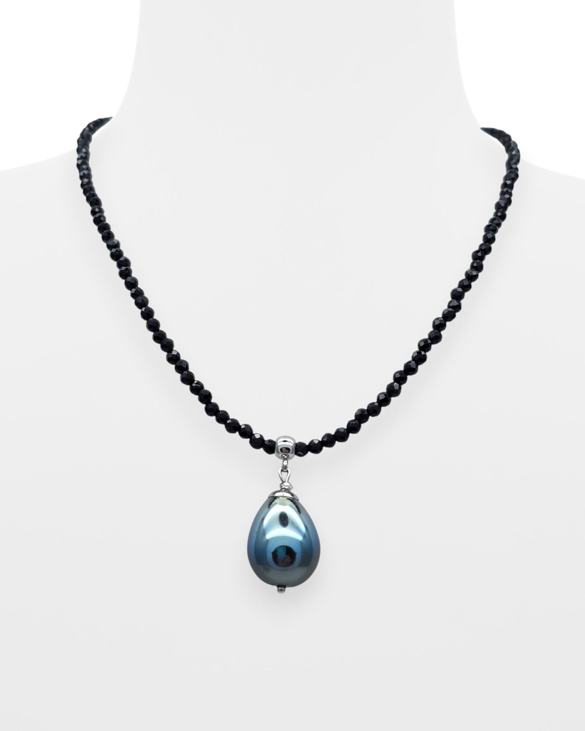 Размер: Удлинительная цепочка поможет скорректировать размер посадки, длина колье 42 - 47 см, шпинель 3 мм. Жемчуг Майорка 14*17 мм.