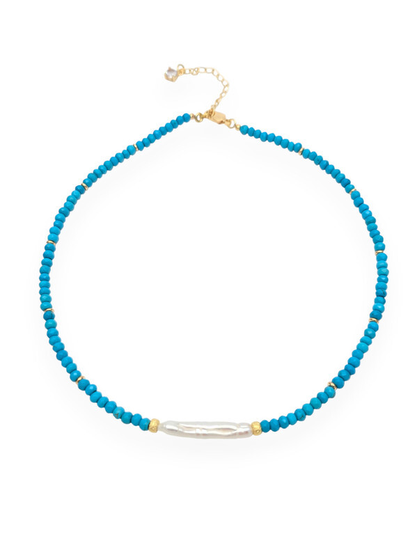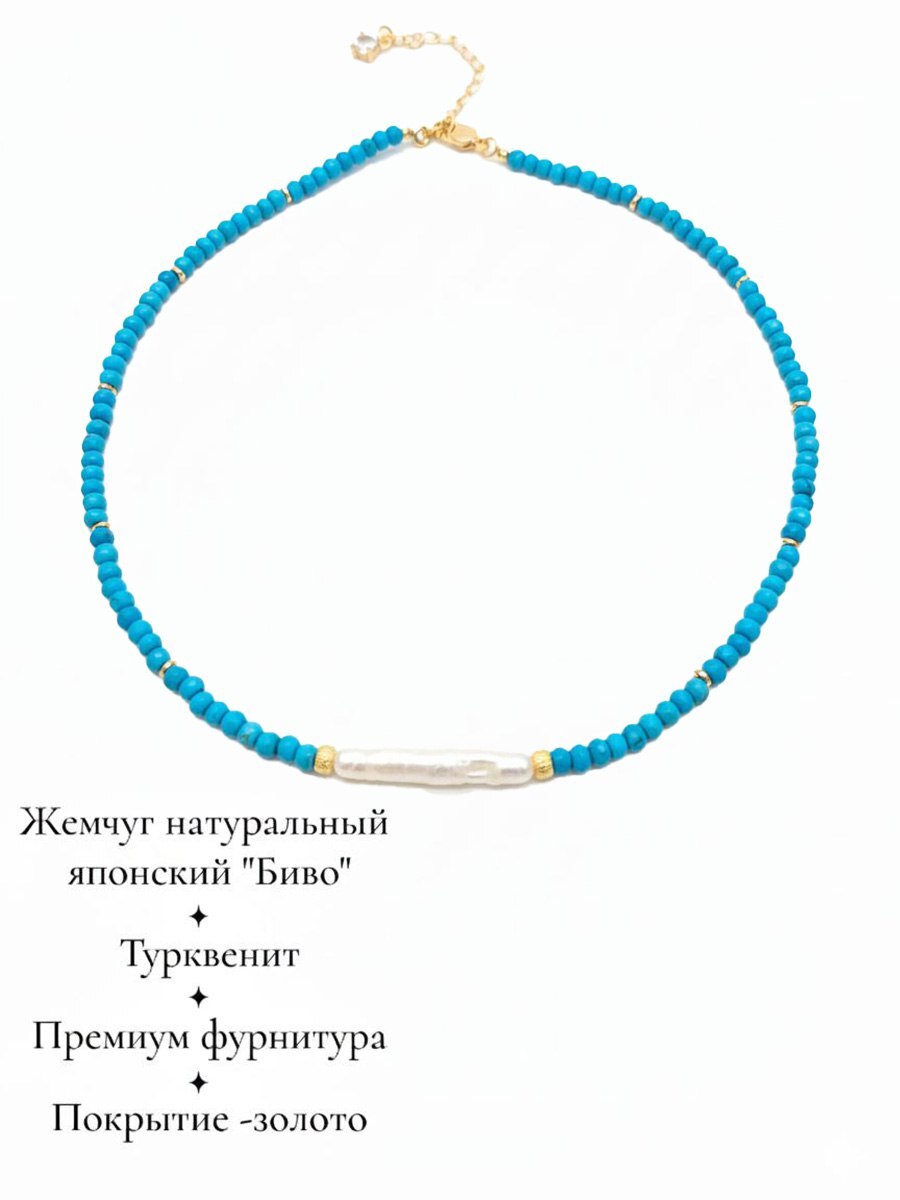Размер: Длина колье 37 - 43 см. Жемчуг 4*25 мм, турквенит 4 мм.