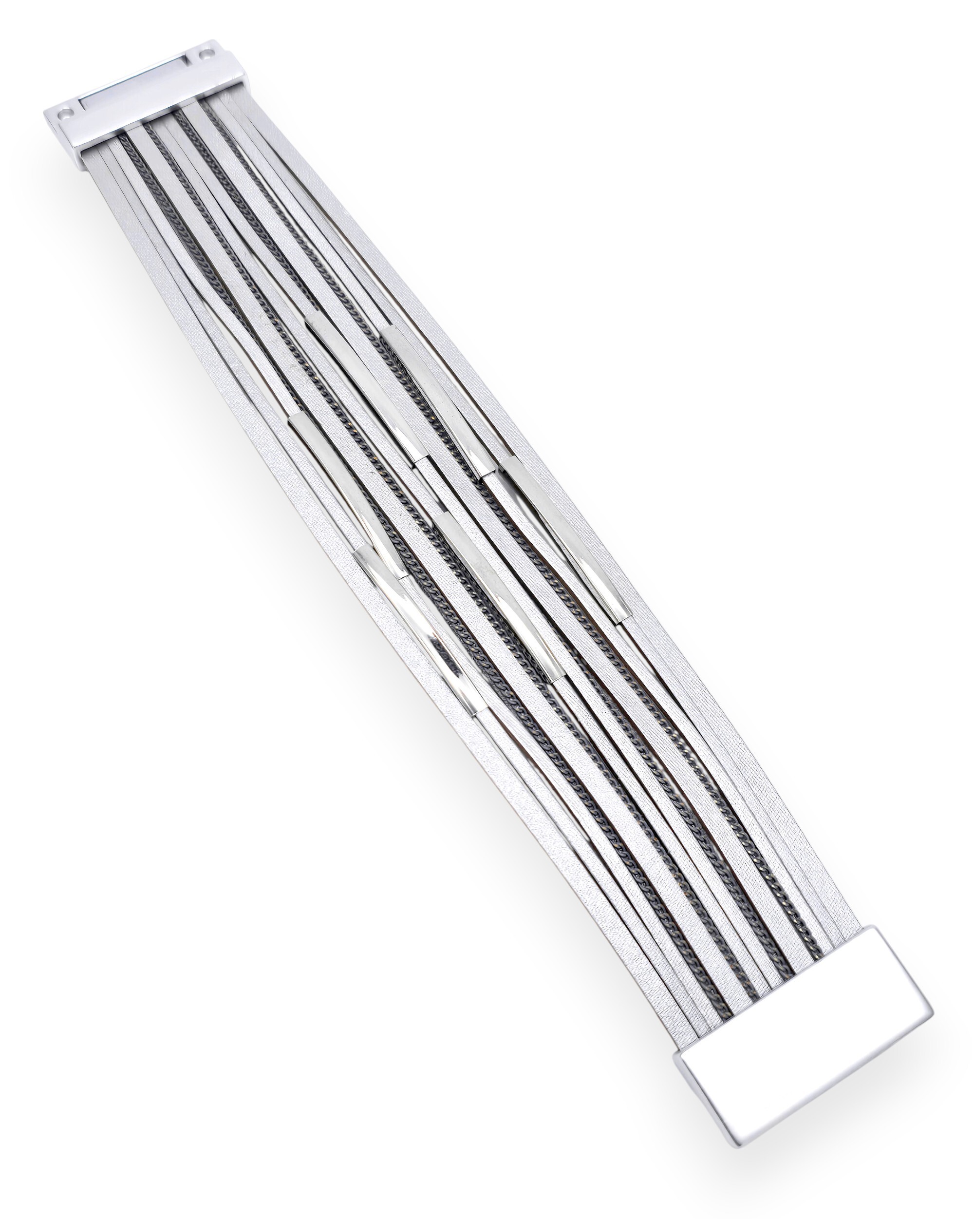 Искусственная кожа, ювелирный сплав. Гальваническое покрытие: родий.