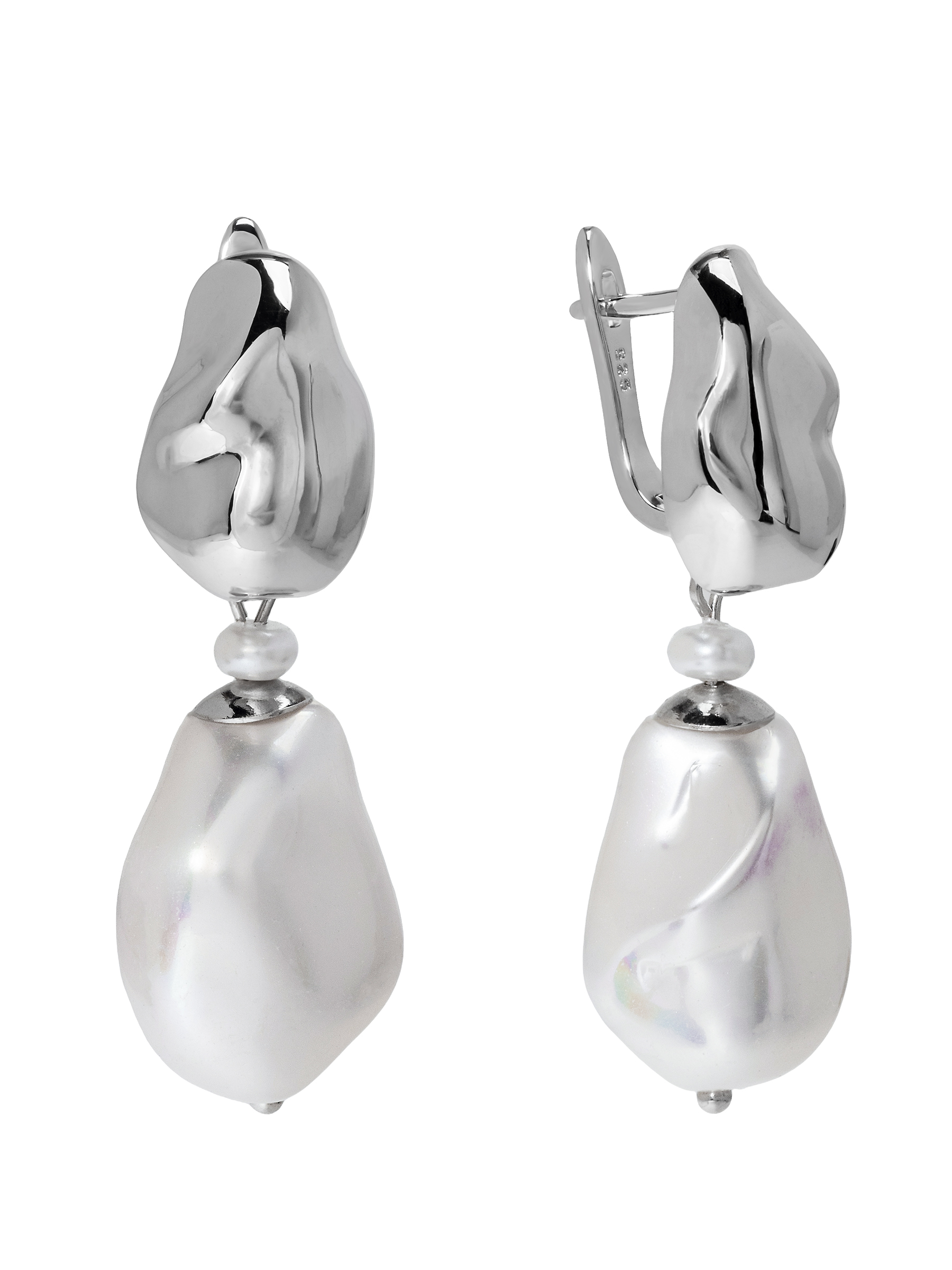 Жемчуг Майорка барочный, ювелирный сплав. Гальваническое покрытие: родий.