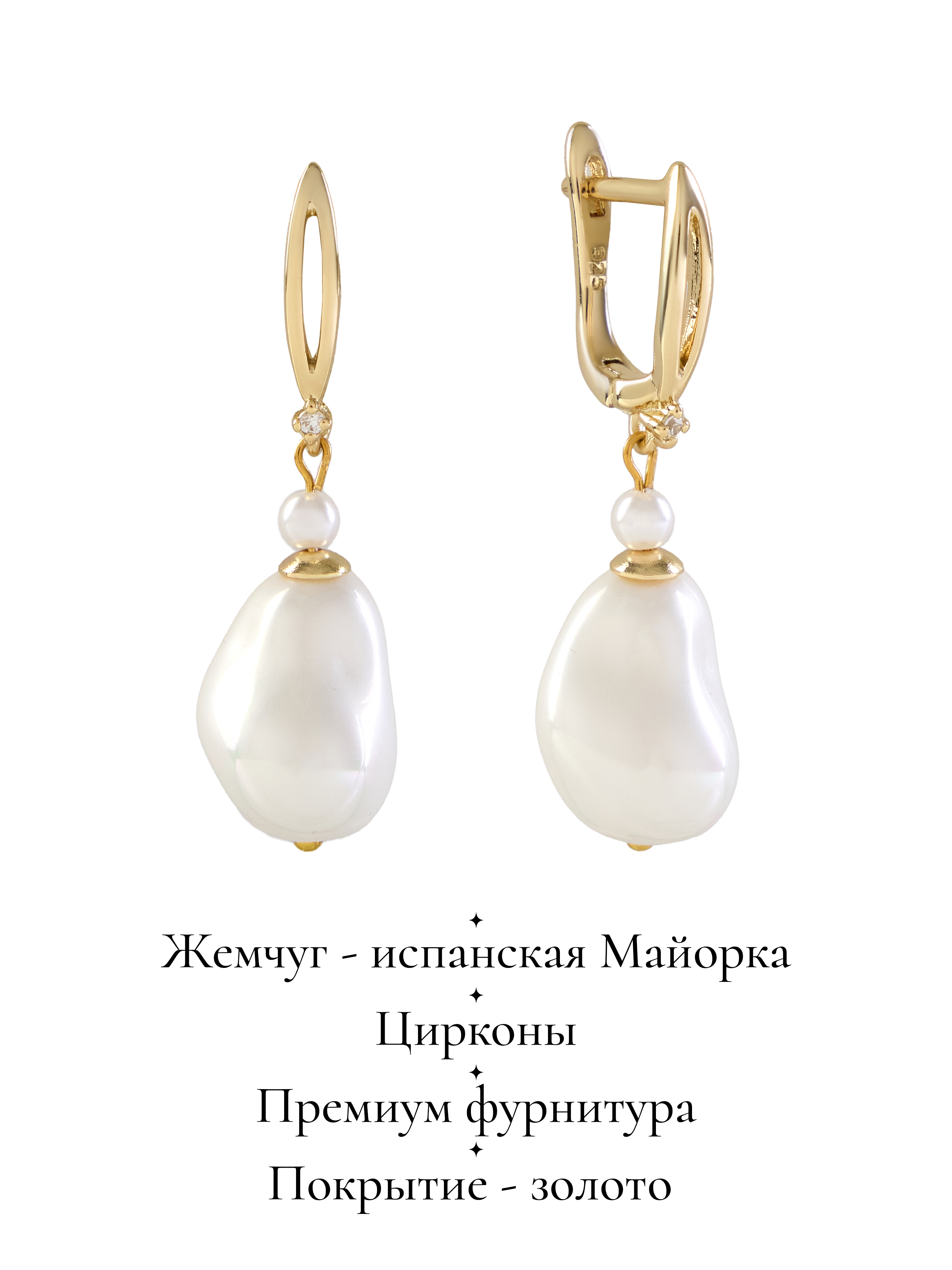 Размер: Длина серег 3,5 см. Жемчуг Майорка 11*14 мм.