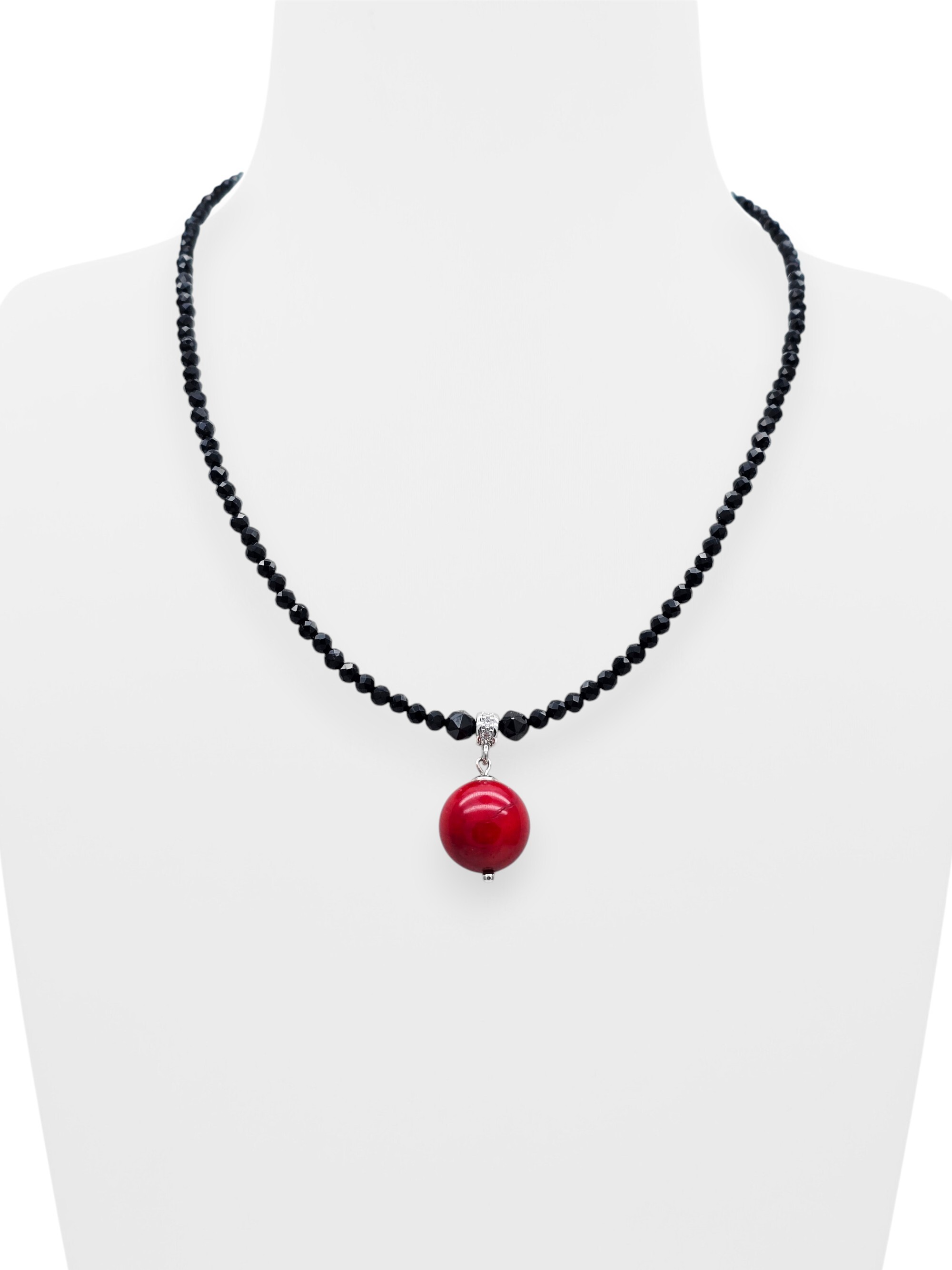 Размер: Длина колье 40 -45 см. Коралл 12 мм, шпинель 3 мм.