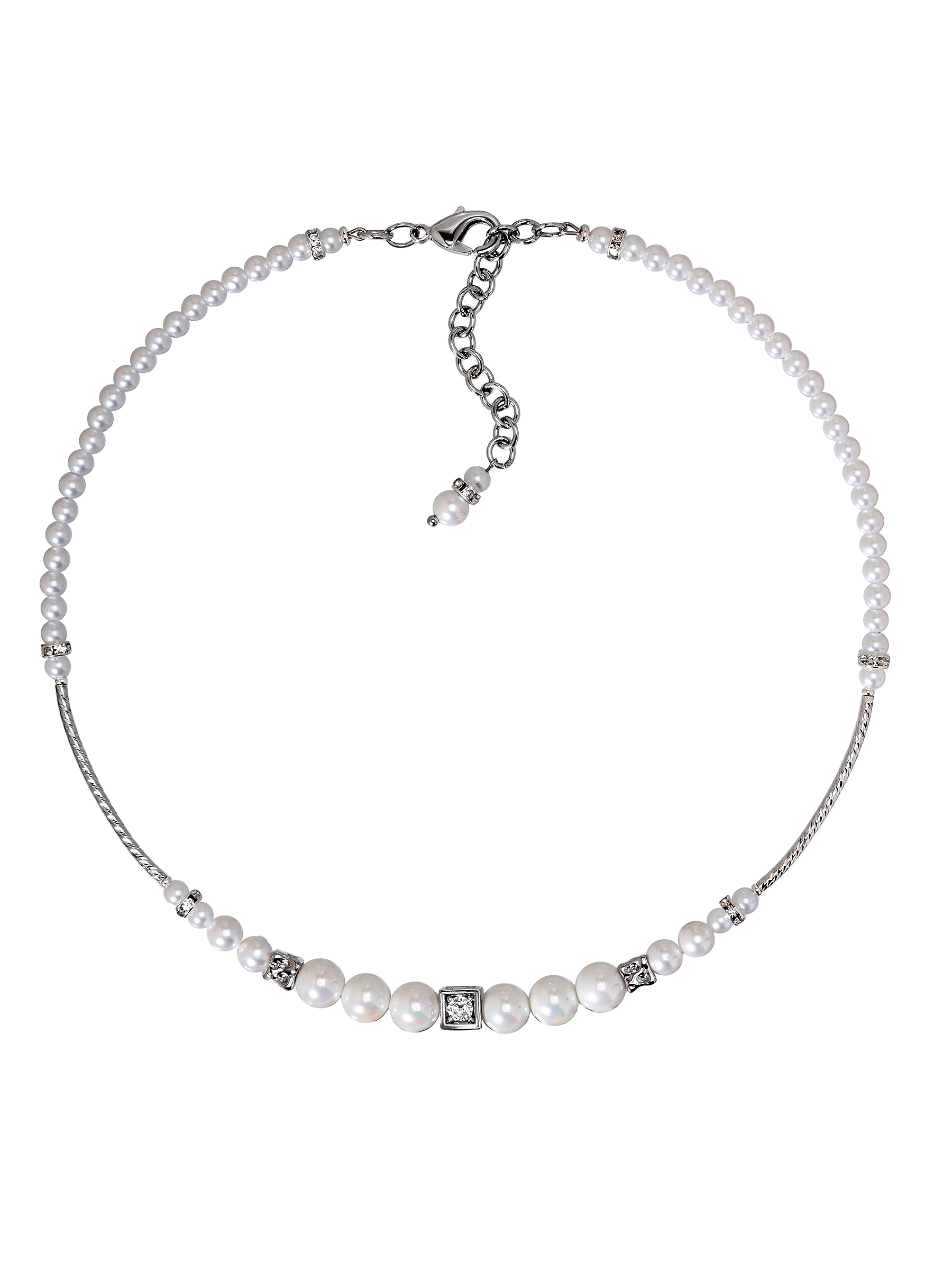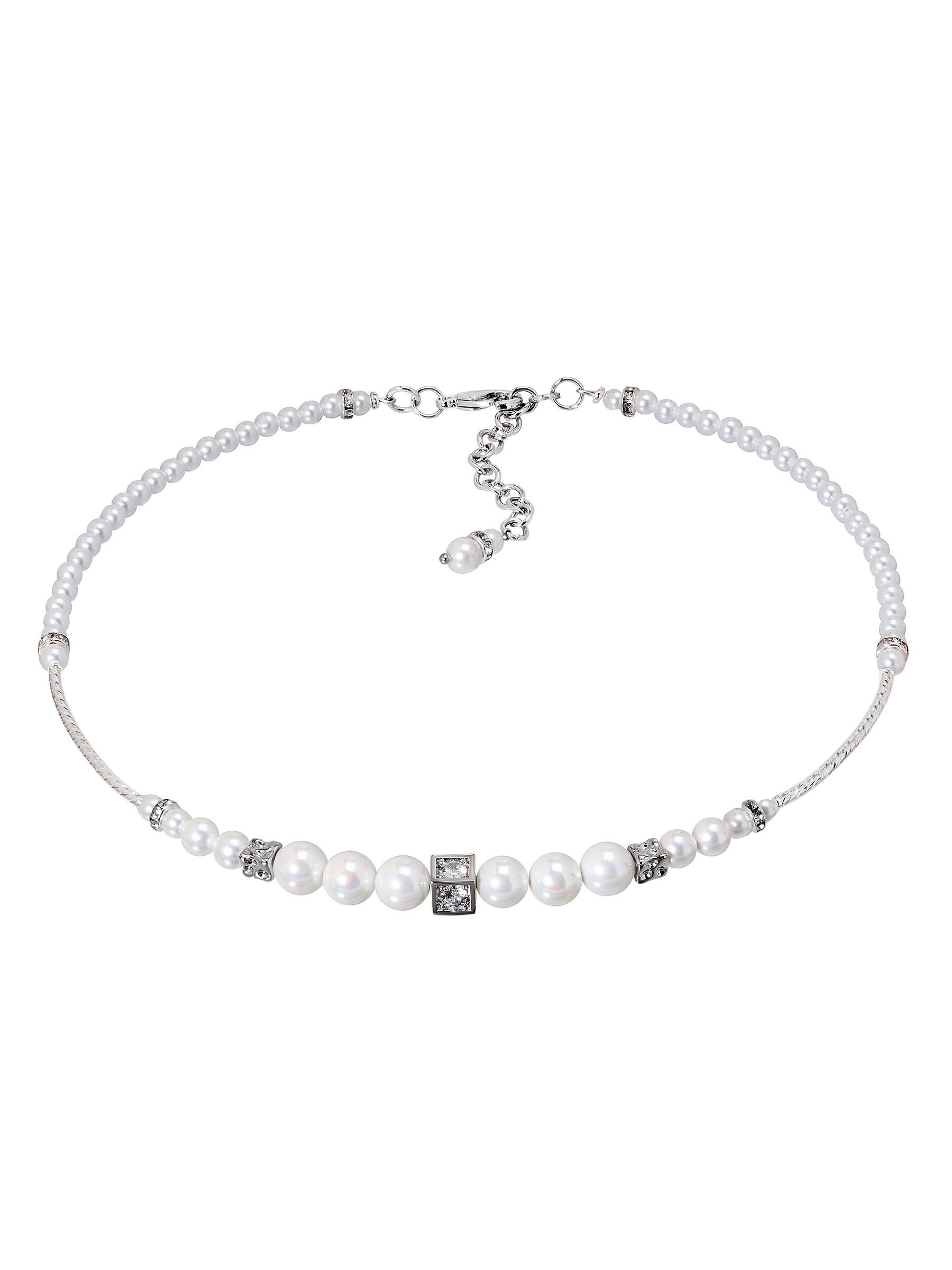 Жемчуг Майорка, циркон, гематит, стразы, ювелирный сплав. Гальваническое покрытие: родий.