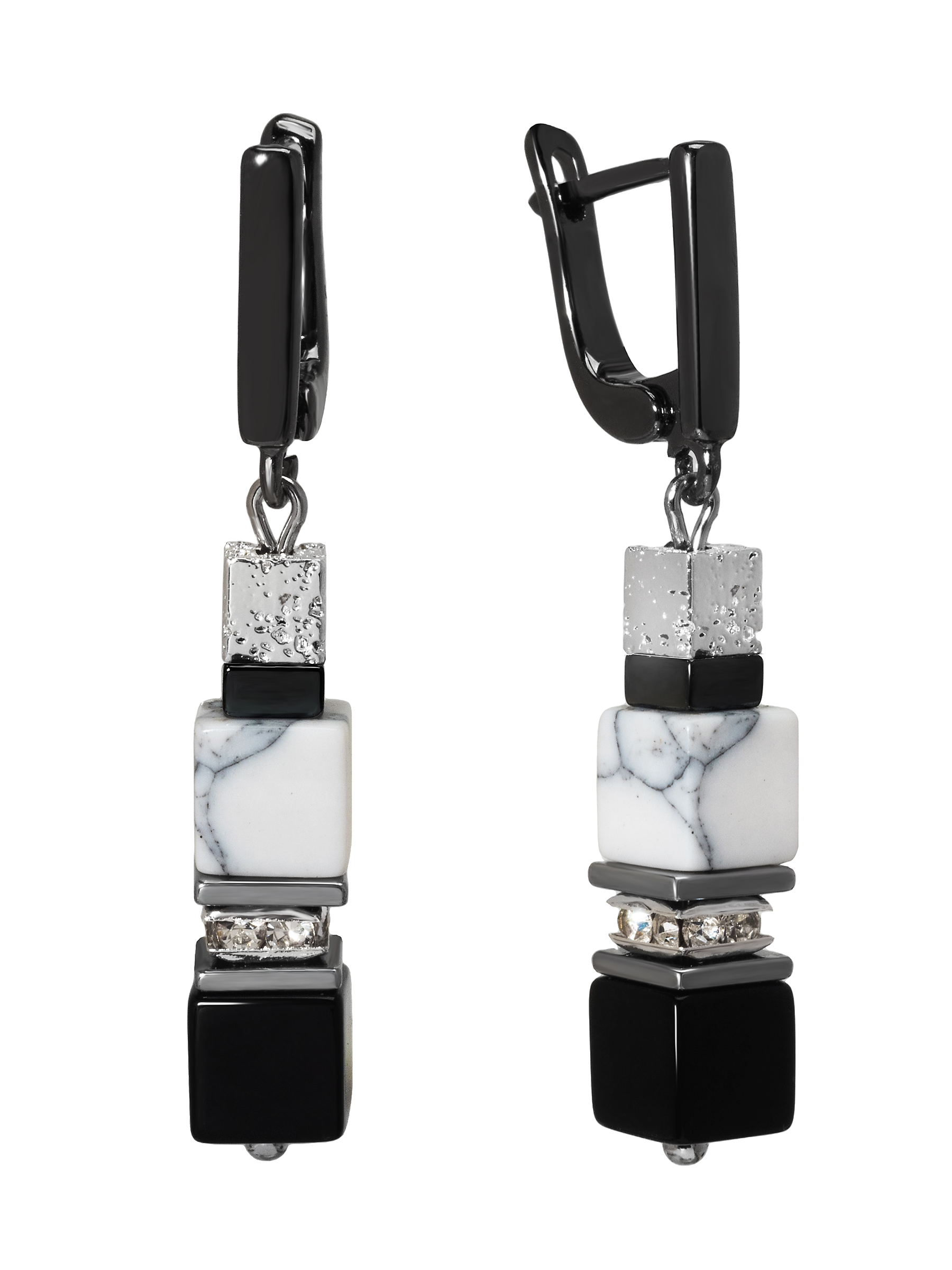 Оникс, кахолонг, гематит, стразы, ювелирный сплав. Гальваническое покрытие: родий.