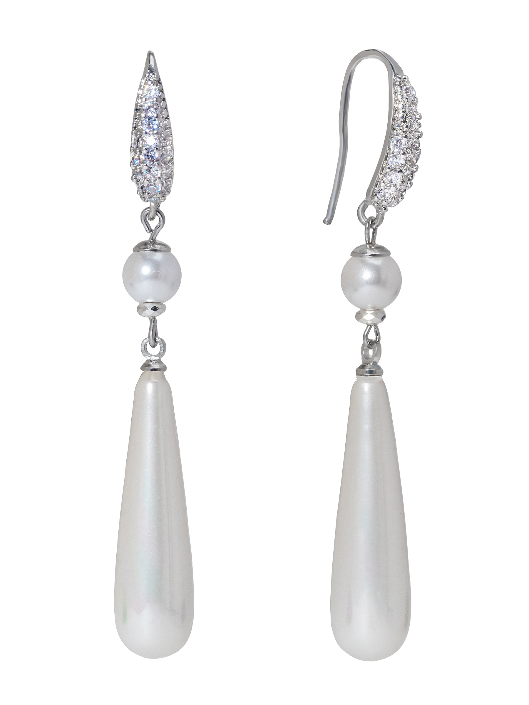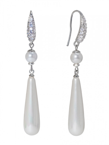 Жемчуг Майорка, цирконы, ювелирный сплав. Гальваническое покрытие: родий.