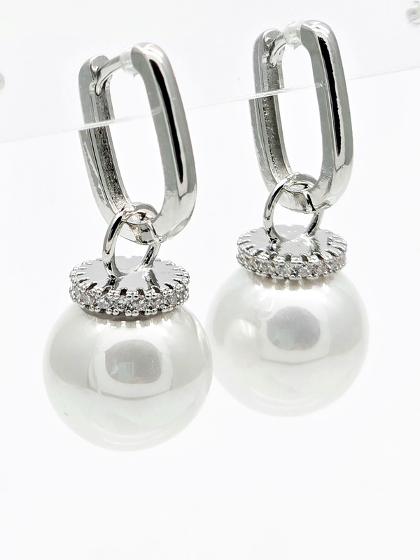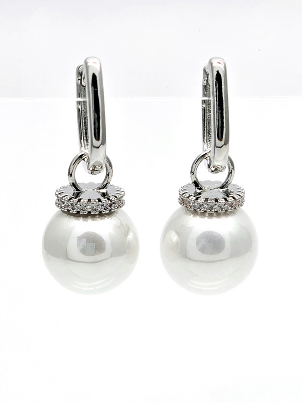 Жемчуг Майорка, цирконы, ювелирный сплав. Гальваническое покрытие: родий.