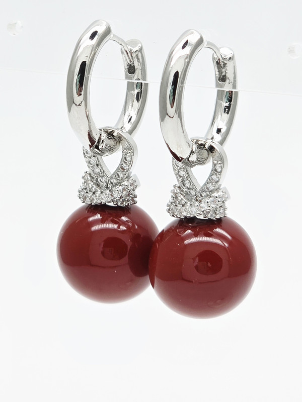 Жемчуг Майорка, цирконы, ювелирный сплав. Гальваническое покрытие: родий.