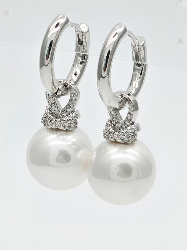 Жемчуг Майорка, цирконы, ювелирный сплав. Гальваническое покрытие: родий.