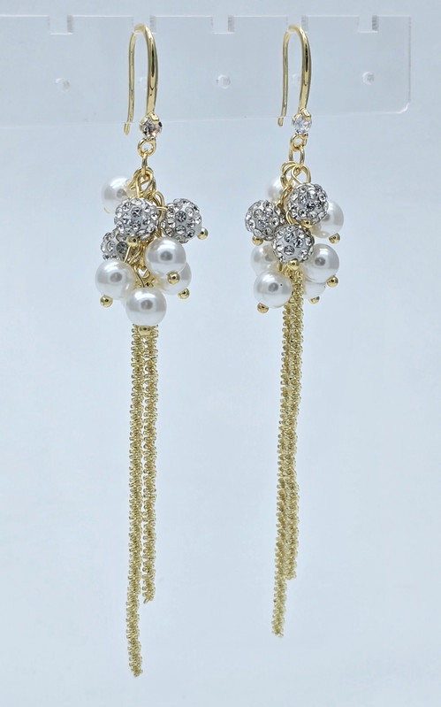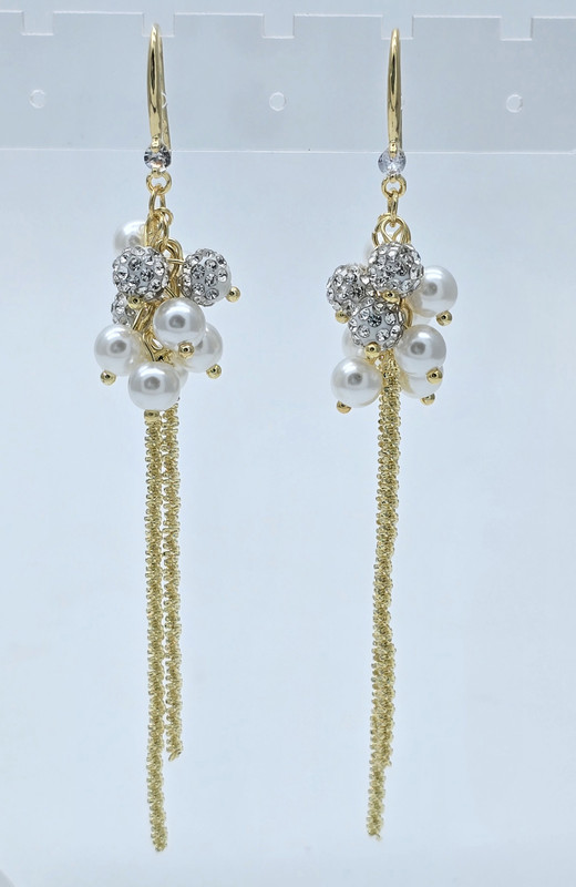 Жемчуг Майорка, кристаллы Preciosa, ювелирный сплав. Гальваническое покрытие: золото.