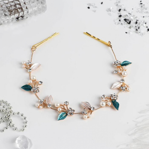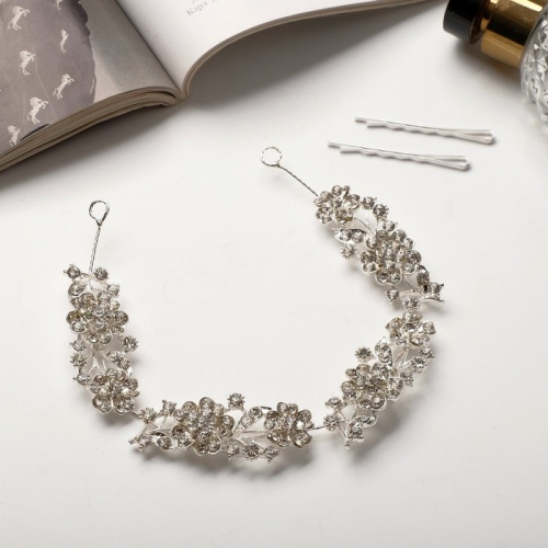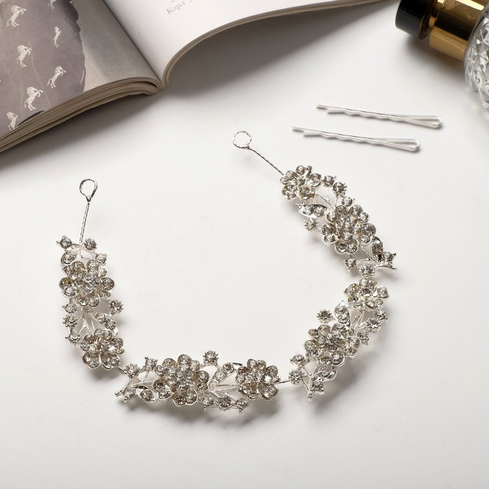 Аксессуар для волос «Долорес», ромашки листочки, 23.5×2 см, серебро